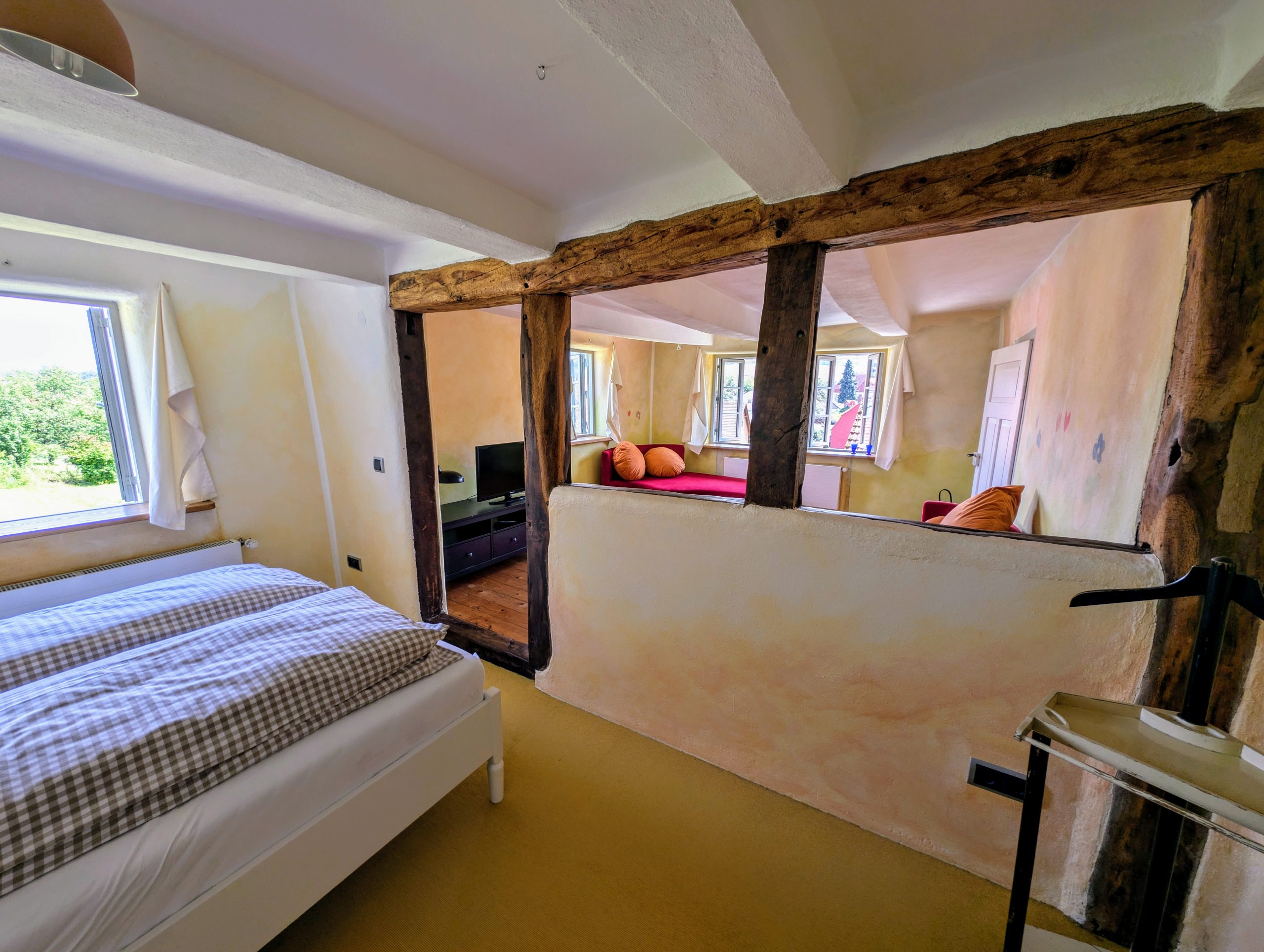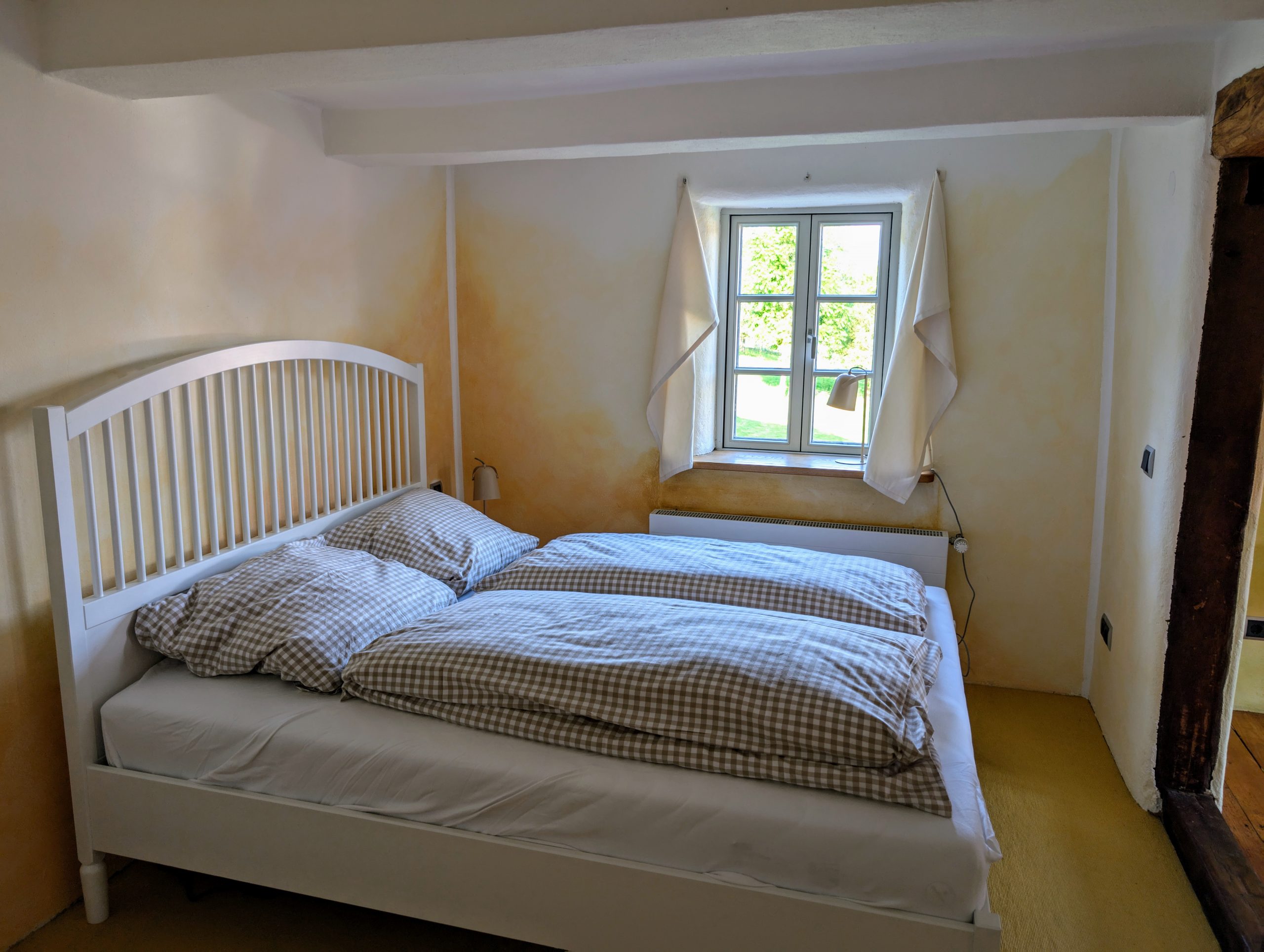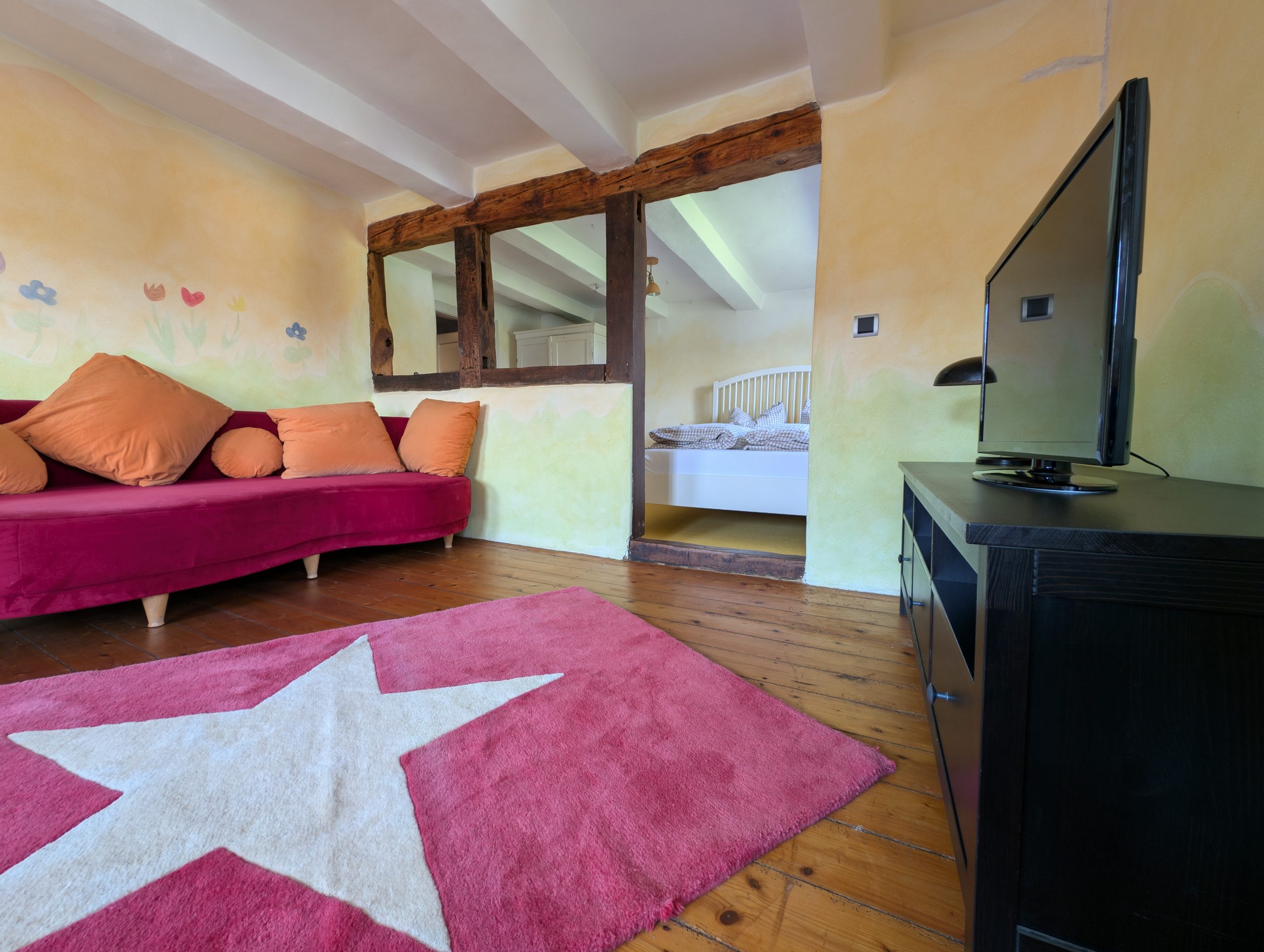 Historische Details wie alte Balken oder Dielen erinnern an das frühere Hofleben, während moderne Annehmlichkeiten für Komfort sorgen. Das gesamte Haus ist strikt Nichtraucherbereich.